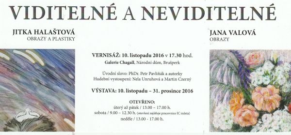 • Viditelné a neviditelné – společná výstava s Janou Valovou – obrazy a keramika – Galerie výtvarného centra Chagall